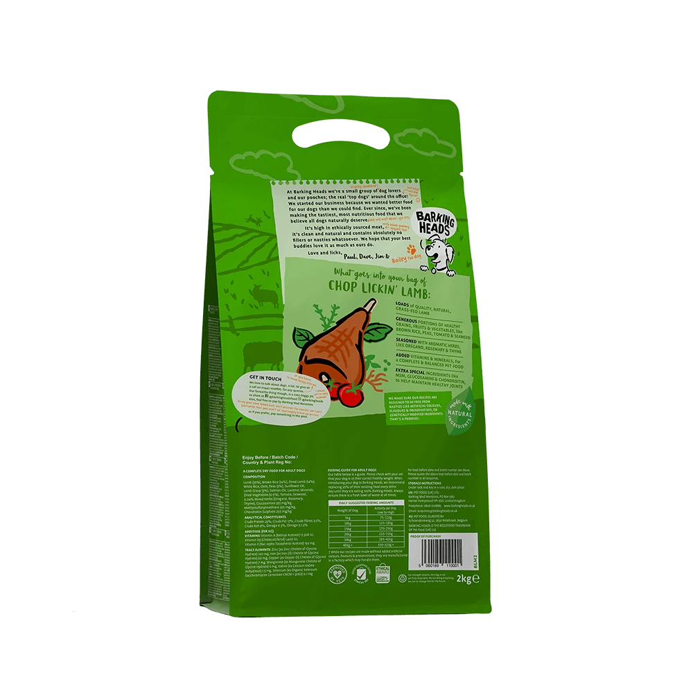 Previously Bad Hair Day, Barking Heads Chop Lickin’ Lamb dry dog food is made with 100% natural grass-fed lamb. This super yummy adult dog recipe is made using only the best quality, natural ingredients. Approved by vets, Chop Lickin’ Lamb is great for skin and coat and contains added joint support too. Blended with a seriously tail-wagging combination of garden veg and herbs, this lamb lunch isn’t called “chop lickin’” for nothing!