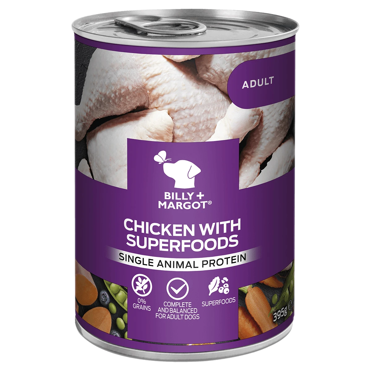 Chicken (64%), Superfoods* (Sweet Potato, Carrots, Peas, Flaxseed Oil (0.1%), Coconut Oil, Blueberries, Manuka Honey), Sunflower Oil, Minerals. *Minimum Superfoods 7%
