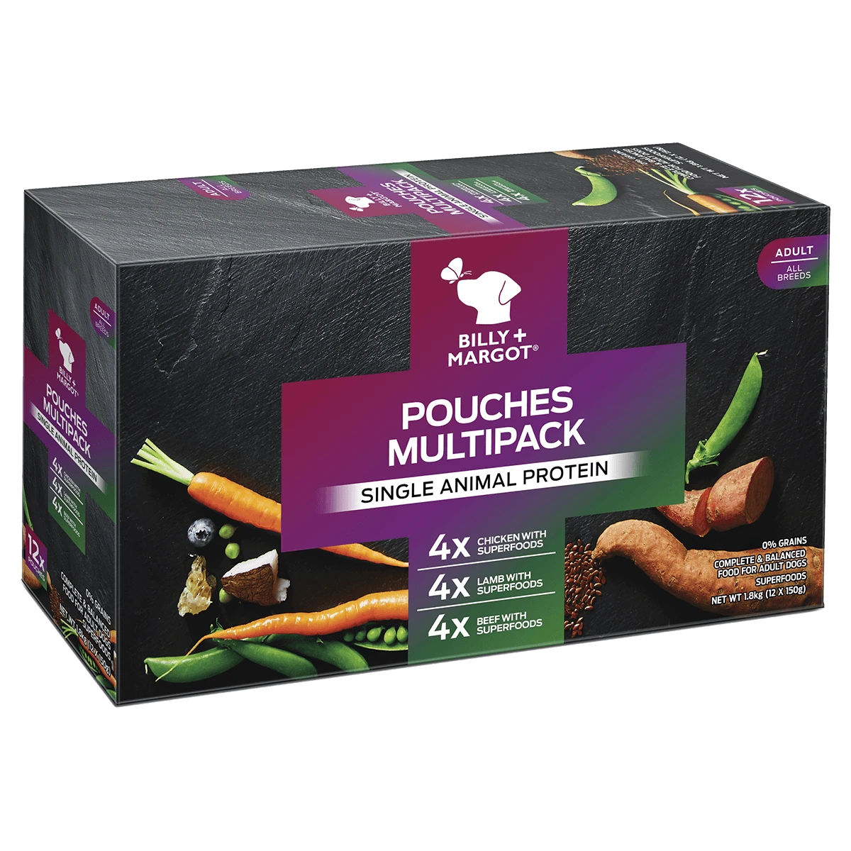 Expertly balanced and nutritionally complete, it can be served on its own or added to dry food for variety. To fulfil your dog’s needs for a range of different animal proteins, our wet dog food range includes either fresh or raw beef, lamb, and chicken, as well as carefully selected natural ingredients like sweet potatoes, peas, carrots and blueberries, and nutrient-dense superfoods such as coconut oil, flaxseeds and Manuka honey.