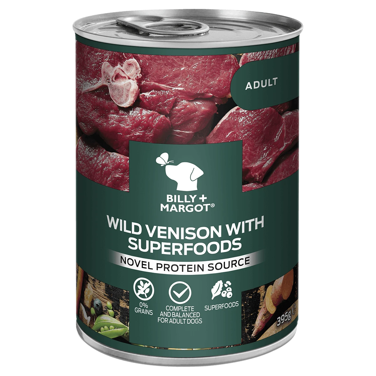 Wild Venison (64%), Superfoods* (Sweet Potato, Carrots, Peas, Flaxseed Oil (0.1%), Coconut Oil, Blueberries, Manuka Honey), Sunflower Oil, Minerals. *Minimum Superfoods 7%