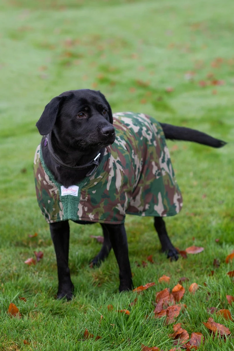 Dogs can remove up to 70% of water when they shake, but the remaining 30% means wet fur which is a poor insulator and can cause your dog’s body temperature to quickly drop. Dogrobes’ innovative fabric has longer loops on the inside that quickly draw moisture away from your dog’s coat. They trap air and body heat to maintain the dog’s body temperature, speed up drying time and keep your dog’s muscles warm after exercise.