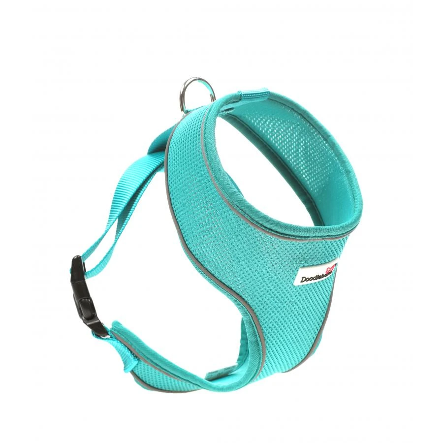 The reconditioned Originals Airmesh Dog Harness from Doodlebone comes in six adjustable sizes. A breathable mesh fabric is the hallmark of this harness, strong enough to take on the outside world and stretchy enough to allow some give.