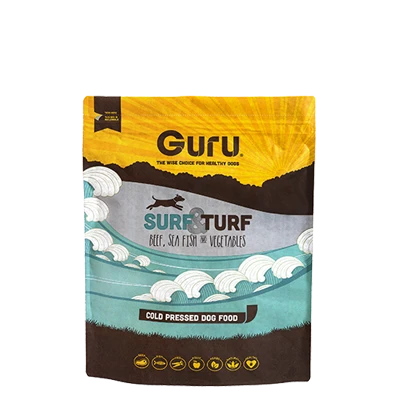 Guru cold pressed dog food a complete dried meal that perfectly complements a raw diet – whether your dog is a puppy or a fully grown adult. We’re sure your dog will love every bit of our gurulicious bite sized pieces, packed with flavour and ingredients including liver, dried fruits, herbs, shellfish and dried beef. Perfect for your dog’s digestion, and designed to help with sensitive stomachs.
