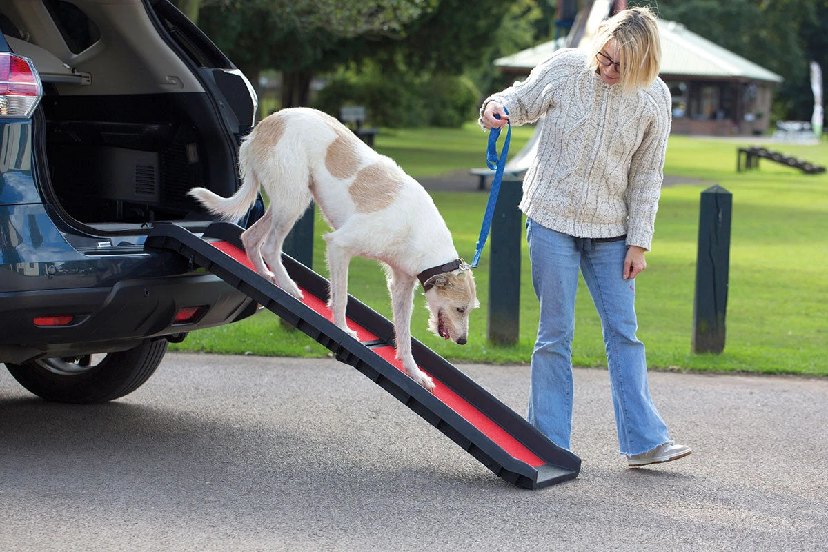 The Lightweight Folding Dog Ramp provides easy access to the car for your dog. Senior dogs and pets with mobility issues still love to be out and about with their family but it can sometimes be a struggle to get them in and out of the car without causing pain or discomfort to the pet or the owner.