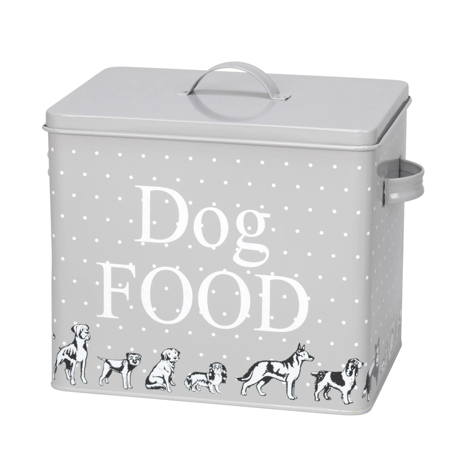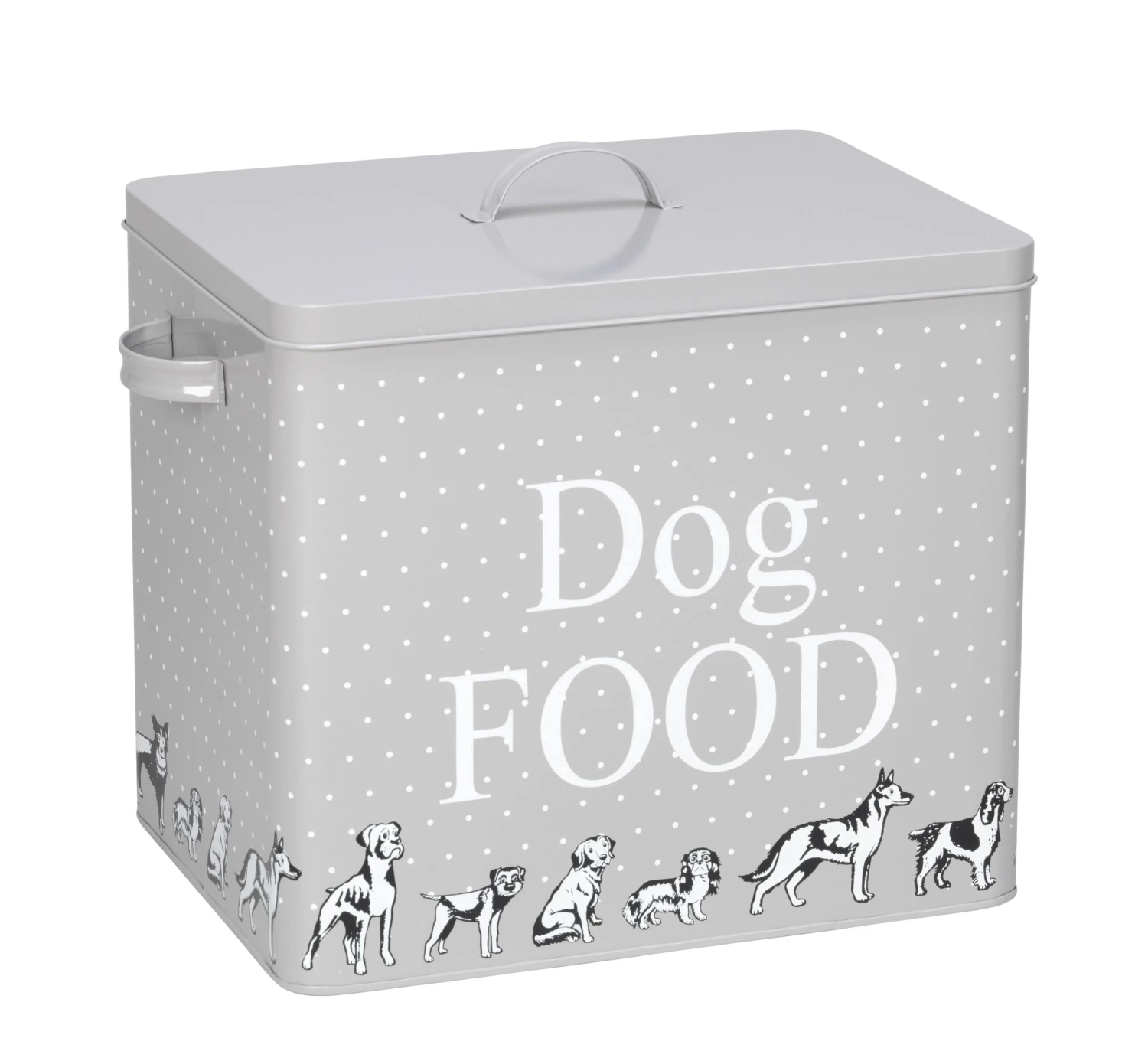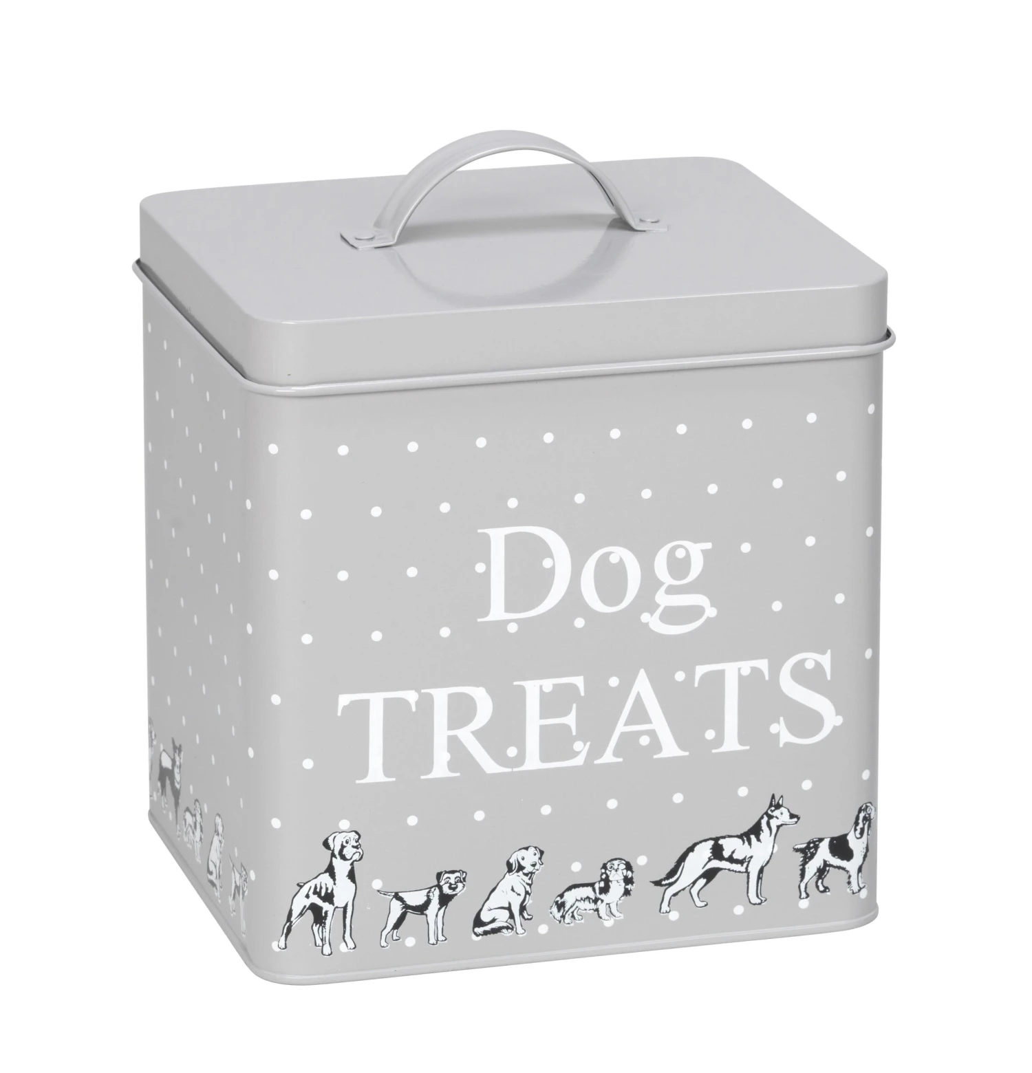 Stylish and practical storage dog treats or food tin for all your pet’s goodies. This grey and white tin will sit perfectly in a modern kitchen and help keep your worktop looking tidy. It won’t take long for your beloved pooch to recognize the sound the lid makes when its feeding time!