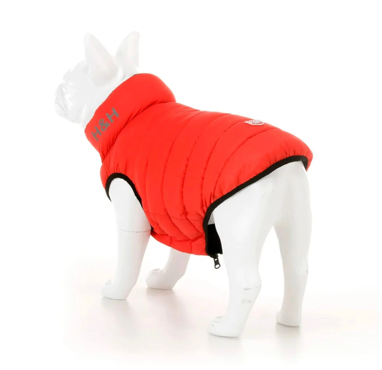 This gorgeous red puffer jacket for dogs makes a real statement! As well as being a funky colour, it’s stuffed with high-quality stuffing that makes it perfect for keeping your dog warm and toasty whenever the temperature drops. It’s practical too: it’s fully reversible with a navy lining, water repellent, an easy zip fastening and is fully machine washable.