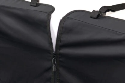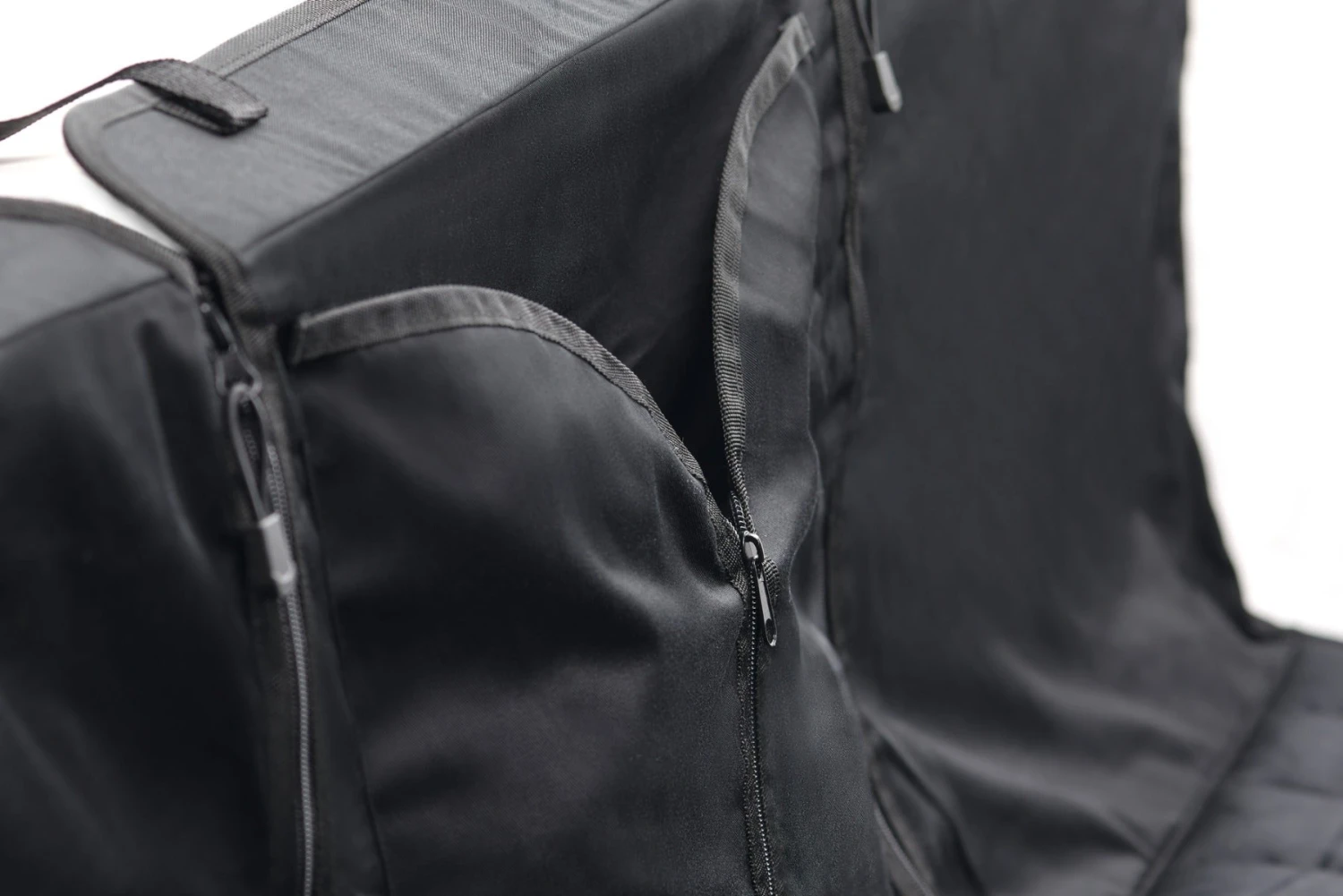 Reinforcements on the straps provide more stability. By integrated slits, with velcro fastener, your dog can be buckled with a safety harness. The seat can be divided into three parts thanks to the zippers, so that other passengers can also be carried. Also practical is the integrated bag in which various accessories can be stored.
