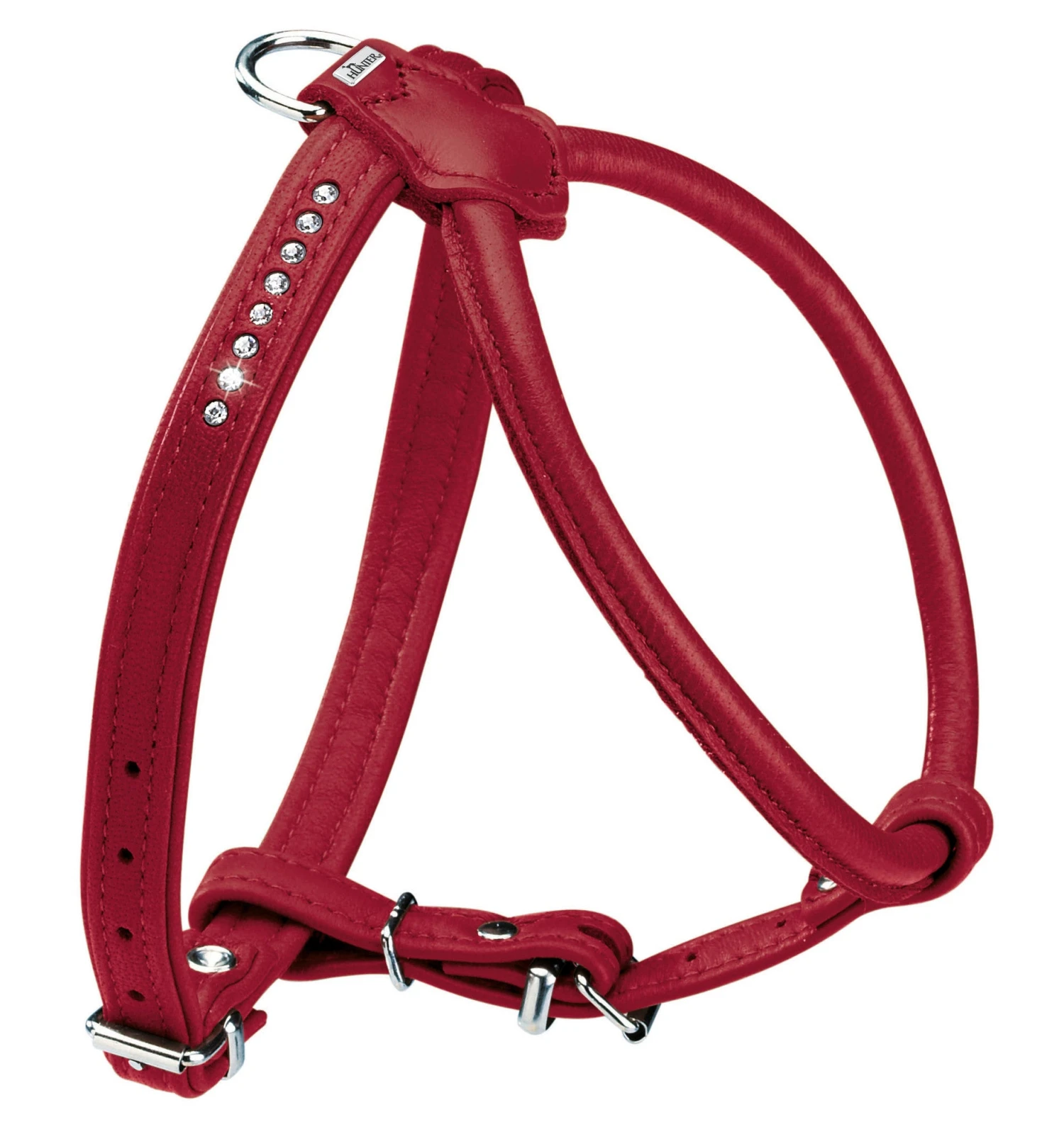 | HUNTER has developed the lightweight ROUND & SOFT LUXUS ELK PETIT harness especially for smaller dogs. This lightweight, soft harness with shining stone decorations is a perfect fit for Pugs and French Bulldogs in particular, and for smaller dogs in general too. The lightweight ROUND & SOFT LUXUS ELK PETIT harness has been designed specifically with smaller dogs in mind. Various elements of the harness ensure optimum wearing comfort – the clever fit which is tailored towards smaller physiques, the soft and supple Scandinavian elk leather and the rounded-profile which is particularly comfortable to wear and is very gentle on the fur, even for long-haired dogs. Thanks to a nylon inlay concealed within the rounded elk leather, the ROUND & SOFT LUXUS ELK PETIT harness is very sturdy despite its delicate and lightweight design. The decorative stones embedded in the surface of the harness provide a hint of luxury. Notice: Sometimes the colour may rub off slightly. |