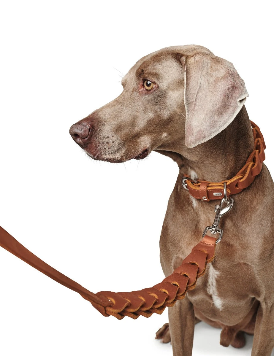 A pleasant walk begins with the selection of the perfect combination of collar or harness and leash. With SOLID EDUCATION CHAIN the decision is made for a handmade leash with strikingly interlinked leather elements, which continues the noble look of the matching collar and causes a sensation. Thanks to the pleasantly generous length, the four-legged friend is granted freedom of movement – so he can sniff around left and right of the chosen path and enjoy the walk in his own way. The same comfort applies to the »other end of the leash« – the »connection to the four-legged friend« made of leather is pleasantly soft and light in the hand, convinces through robustness and develops a fine and natural patina when used regularly. SOLID EDUCATION CHAIN expresses love of leather and is a real highlight in your going-out wardrobe.