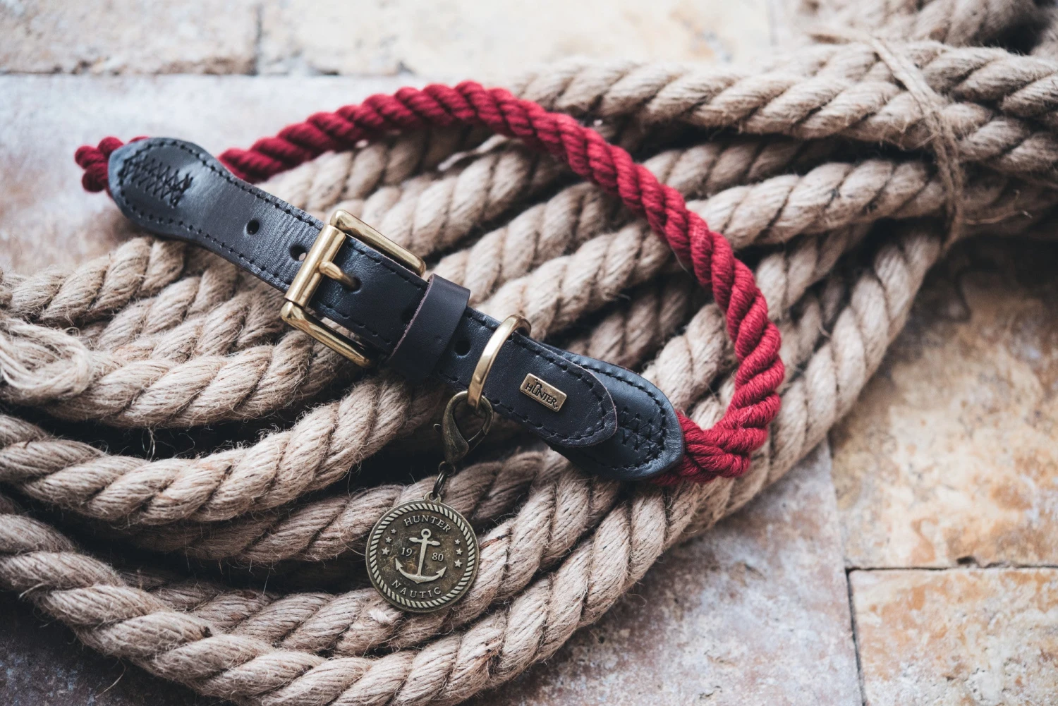 Do you long for a holiday by the sea? The typical beach atmosphere, colours and scents, the freedom to roam the sand dunes with your dog? If you don’t see yourself making it to Sylt for a holiday anytime soon, we can offer you an affordable alternative: the LIST collar in rope look. This collar looks as if it has been made from sailing rope and conjures up images of the sea every time you walk your dog. The LIST collar comes in blue and beige – to match the colours of the sky, sea and sand – making every walk feel like a stroll along the beach. The maritime look is underlined by the leather end-pieces as well as the brass rings and buckles. For added decoration, the LIST collar features a removable pendant with anchor motif. Made from strong rope, this collar is ideal for medium-sized and large dogs. The LIST collar comes in dark blue and beige, as does the matching LIST leash.