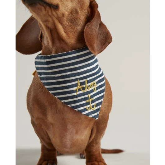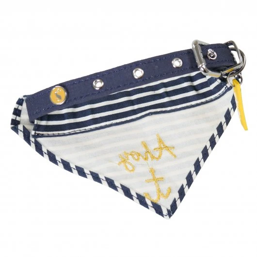 Joules Ahoy There! Nautical Collar & Neckerchief is a luxury cotton and canvas dog bandana, with high-quality collar style fastening. The fabric bandana is removable, so the collar can also be worn on its own.