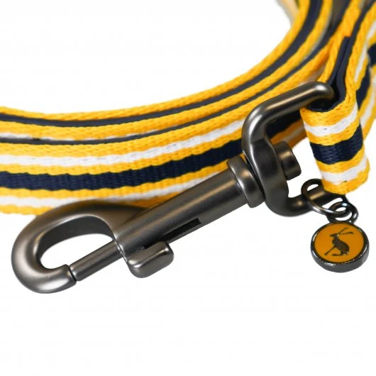 The Joules Coastal Dog Lead and the matching Joules Coastal Collar in Yellow Stripe are comfortable and durable. Featuring a sturdy clip for attaching to your dog’s collar with Joules embellishments.