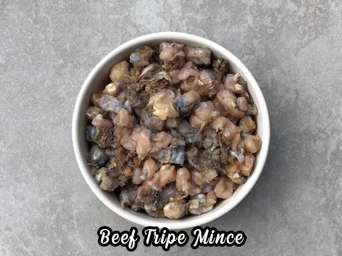 - Week 1: Plain Tripe Mince (Lamb Tripe Mince or Beef Tripe Mince and stay with it for the week)