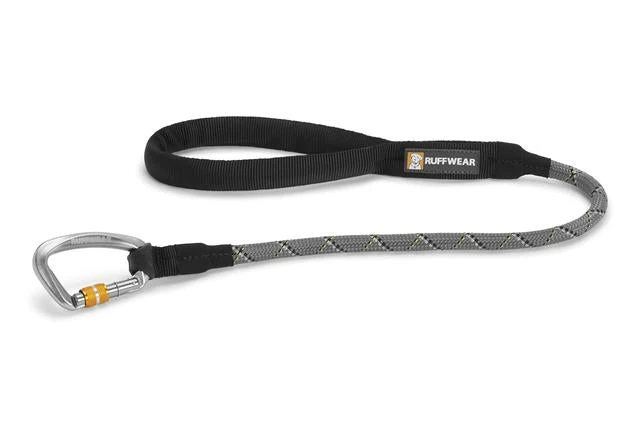 The Ruffwear Knot-a-Longâ„¢ dog lead is a rugged, climbing-inspired lead in a 30-inch (0.76 m) length. This short lead uses strong, supple kernmantle rope and a secure locking carabiner just like the longer Ruffwear knot a Leash. The short length is ideal for keeping dogs close and pairs great with the Ruffwear Double Track Dog Lead Coupler.