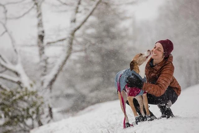 The Overcoat is the classic cold-weather utility jacket, built with sturdy, burly materials to keep up with even the most active dog diving through brush and brambles. The wind- and water-resistant outer fabric sheds light moisture, while the interior recycled polyester fleece lining adds cozy warmth. Side-release buckles on both sides provide easy on/off, and a leash portal allows the Overcoat to be worn over all Ruffwear harnesses (and most other harnesses).