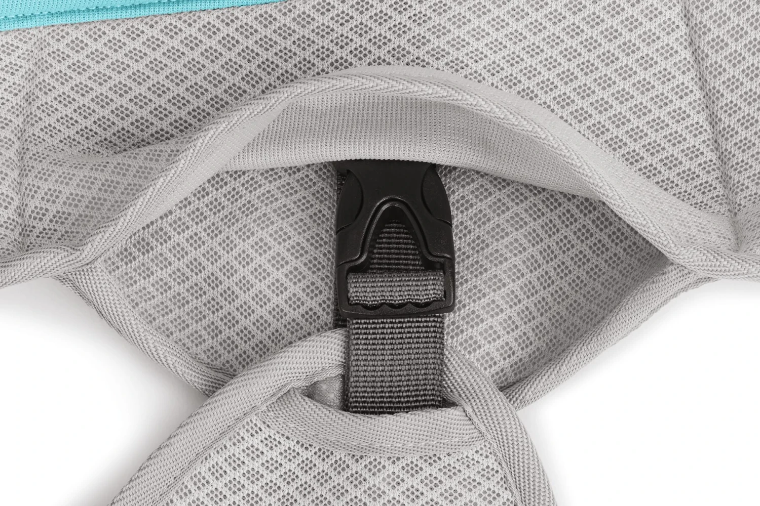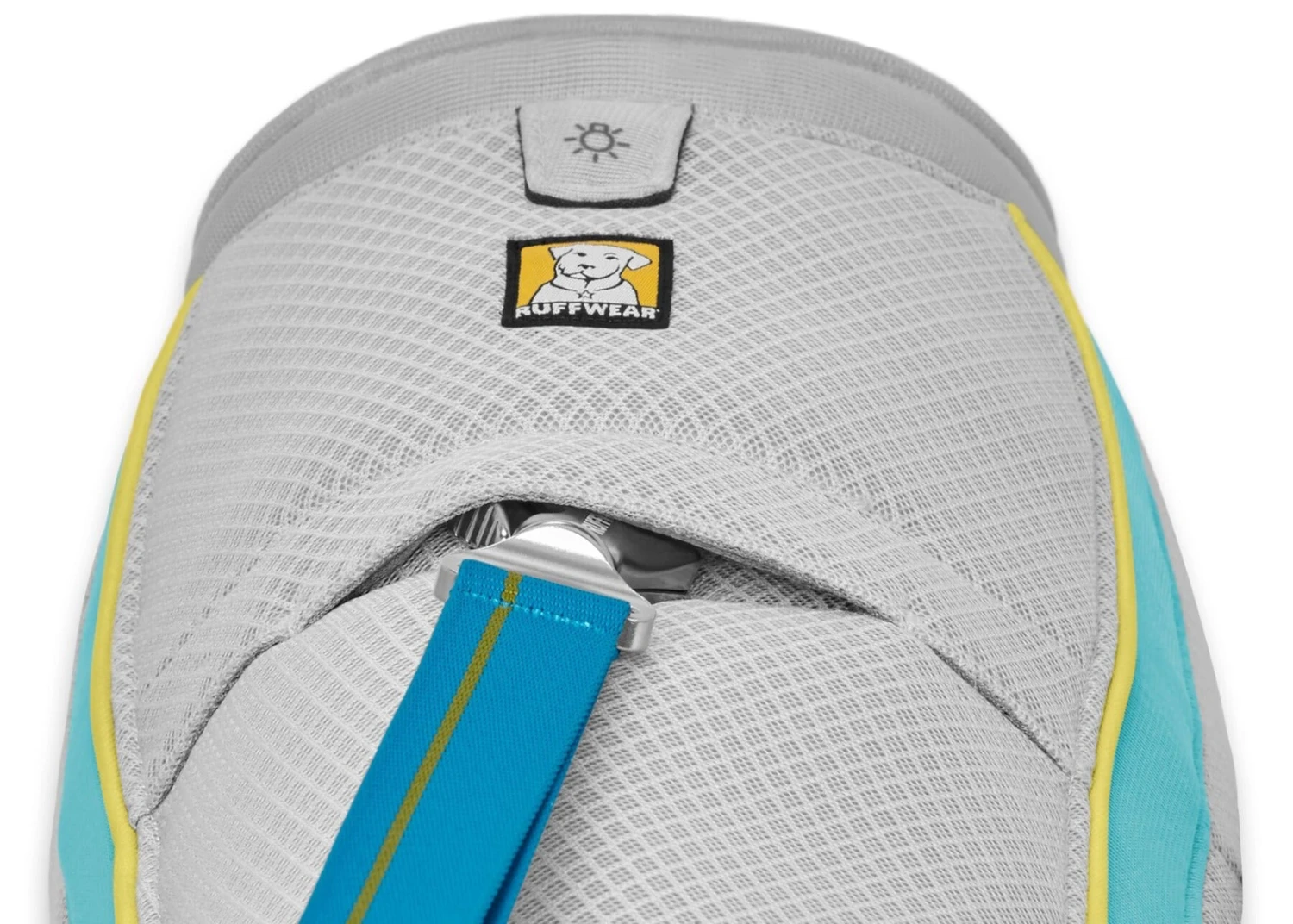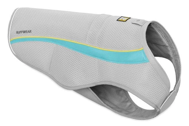 The Ruffwear Swamp Cooler Dog Cooling Vest provides protection from the sun and cooling through evaporation. In warm climates, dogs typically stay cool by seeking shade during the heat of the day and moving around in cooler temperatures. The Swamp Cooler allows dogs to perform in hot climates. To activate the Swamp Cooler, soak in water, wring out and place on your dog. The light-colored fabric reflects solar radiation, while evaporative cooling pulls heat from the dog. The integrated leash portal allows leash attachment when the Swamp Cooler is worn over Ruffwear’s Front Rangeâ„¢ or Hi & Lightâ„¢ Harnesses.