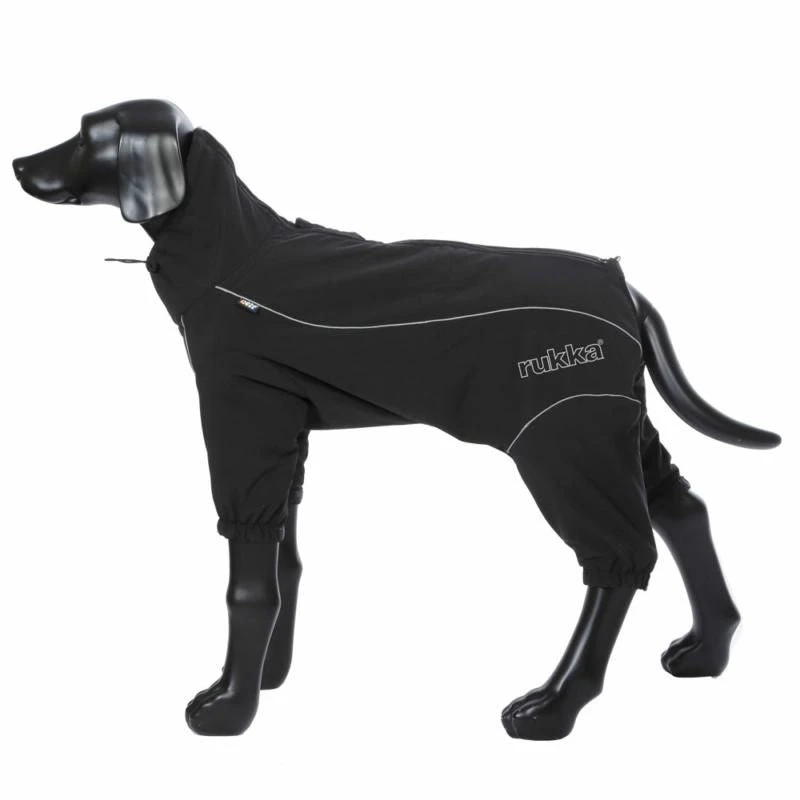 A warm softshell overall dog coat with legs which is made from weatherproof fabric with a soft, plush lining to protect your dog from the cold and wind. A luxurious, plush lining to keep them warm and to make the overall comfortable to wear. Thanks to the zip closure on the back, the dog overall is quick and easy to put on. An adjustable waist and neckline add the final touch for the perfect fit and protection. Adjustable leg openings prevent cold wind or mud from entering the overall through the leg openings and keep the thighs warm.