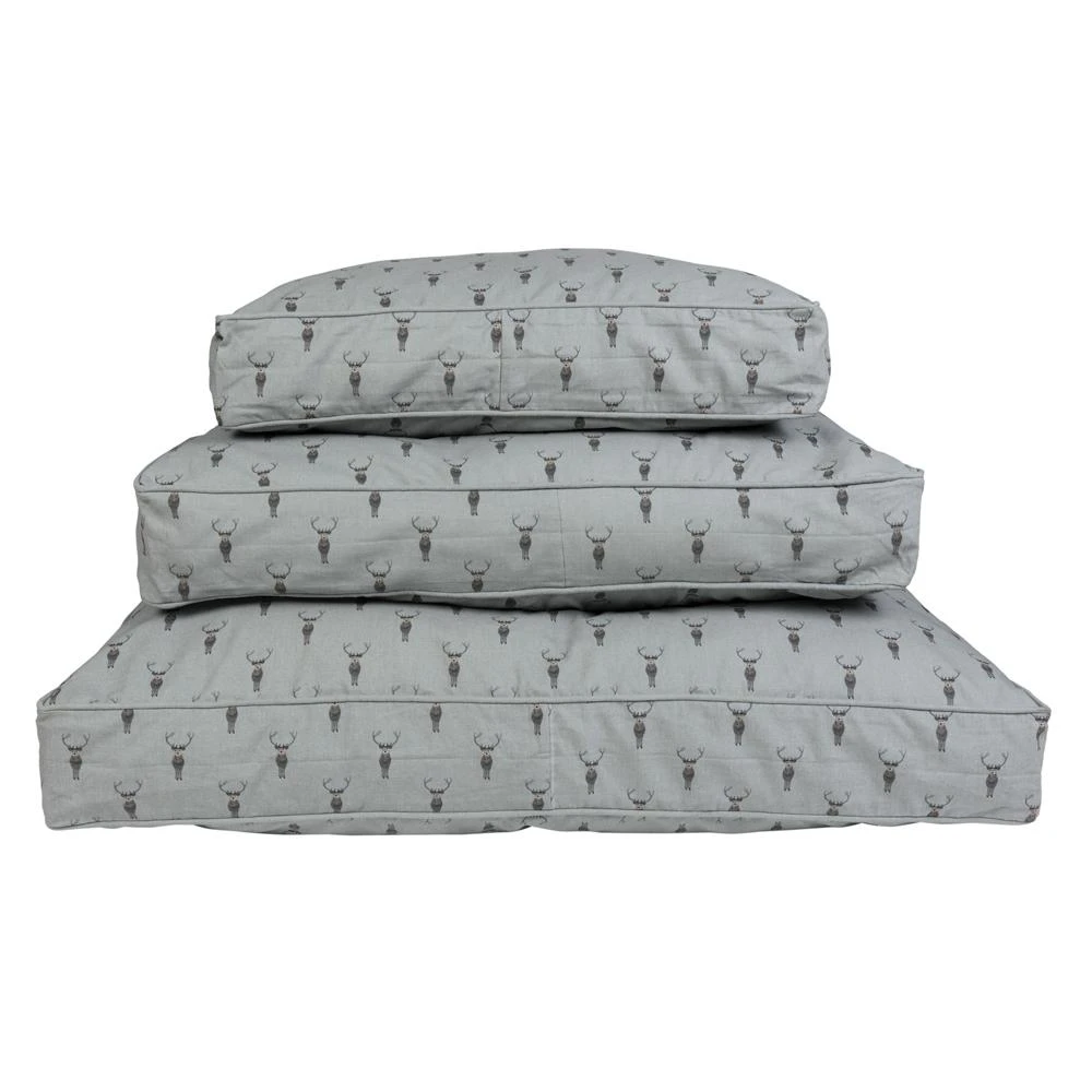 Made from their hardwearing cotton Highland Stag fabric it is covered in magnificent stags on a slate teal coloured background. There’s a practical removable zipped cover so you can machine wash it when it gets mucky.