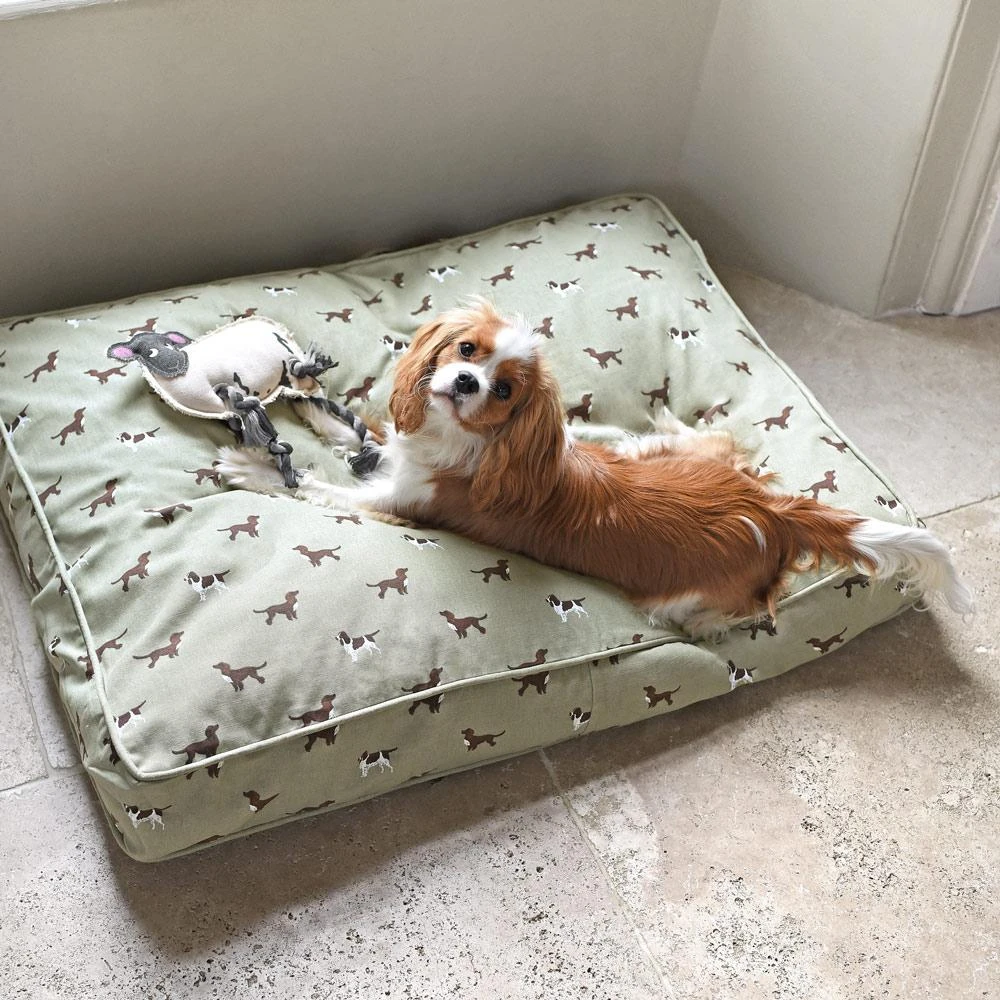 With plenty of room to stretch out, your dog will adore a Sophie Allport pet mattress. Made from Sophie’s Spaniel design fabric, this mattress features the affectionate and gentle cocker, agile and sociable springer and the charmingly refined Cavalier King Charles spaniel on a pale moss coloured background.